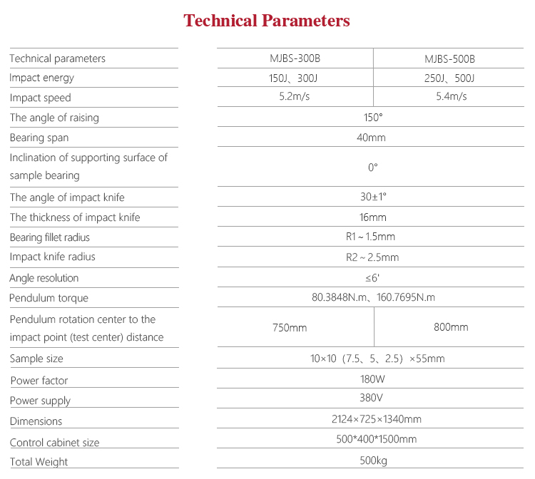 | Pendulum rotation center to the impact point (test center) distance | 750mm |
