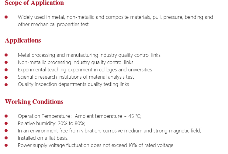 l Test machine is a large precision instruments, should pay attention to water, moisture. Exposed workstations, upper and lower beam parts and attached parts should be coated with anti-rust oil to prevent rust;