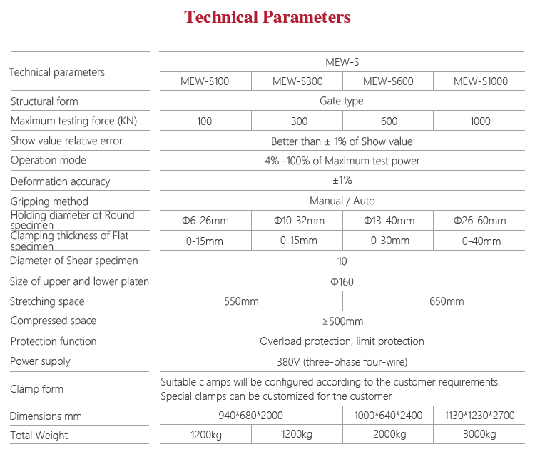 Mitech MEW-S digital display series hydraulic universal testing machine, by controlling the high-pressure pump to drive the screw movement, equipped with the corresponding auxiliary for metal, non-metallic and composite materials for stretching, compression, bending, cutting, stripping, tear.With using digital processing, high-precision data acquisition and control technology, graphical interface, integrated design, it owns stable performance, strong structure, high reliability, simple operation. Widely used in metal and non-metallic processing industry, quality inspection departments quality testing, scientific research and other areas of higher education institutions.It is the necessary professional precision testing equipment for improving production efficiency and saving production costs.