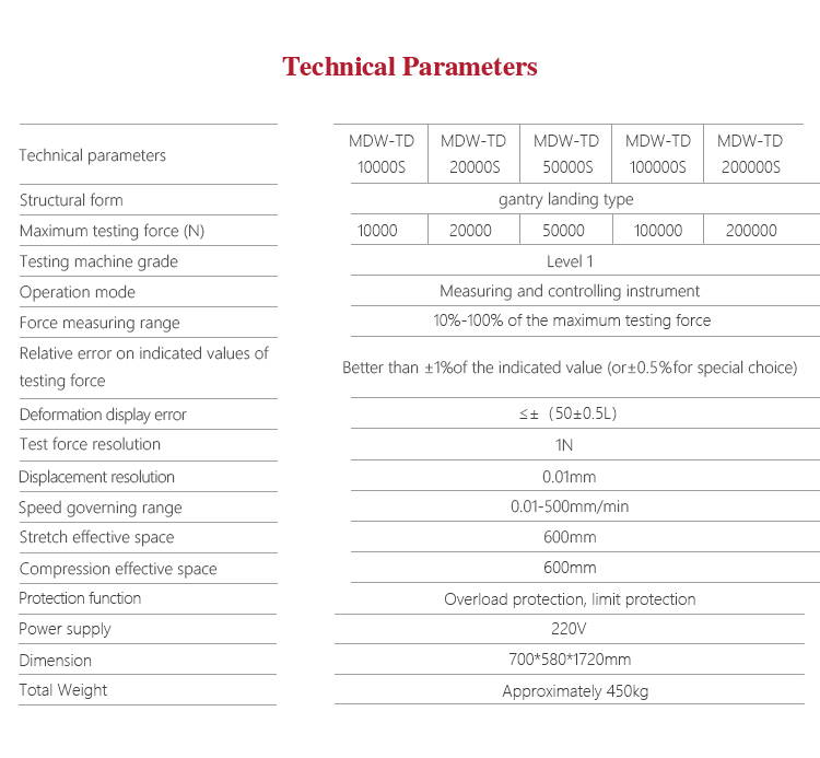 Product OverviewMitech MDW-TDS digital series of Single - Arm Spring Tension/Compression Testing Machine, through the single-chip automatic control motor driving screw movement, for a variety of coil springs for tensile and compression test. it use of built-in controller, AC servo motor, automatic control and data acquisition system, stable performance, strong structure, high reliability, simple operation, high degree of automation. Widely used in spring manufacturing, low-voltage electrical appliances, power machinery, institutions of higher learning and scientific research institutes and other fields.It is the necessary professional precision testing equipment for improving production efficiency and saving production costs.