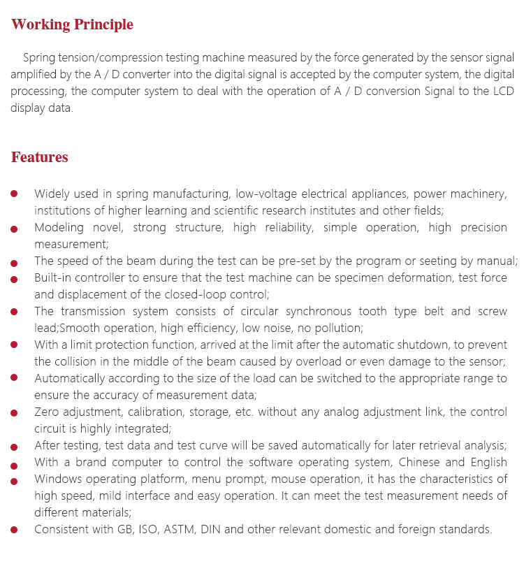 Widely used in spring mechanical performance test.