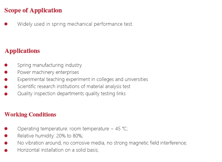 Instrument Featuresl Widely used in spring manufacturing, low-voltage electrical appliances, power machinery, institutions of higher learning and
