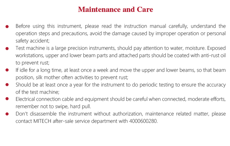 l Don’t disassemble the instrument without authorization, maintenance related matter, please contact MITECH after-sale