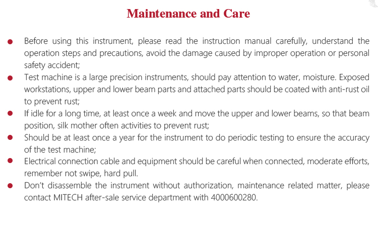 l Don’t disassemble the instrument without authorization, maintenance related matter, please contact MITECH after-sale