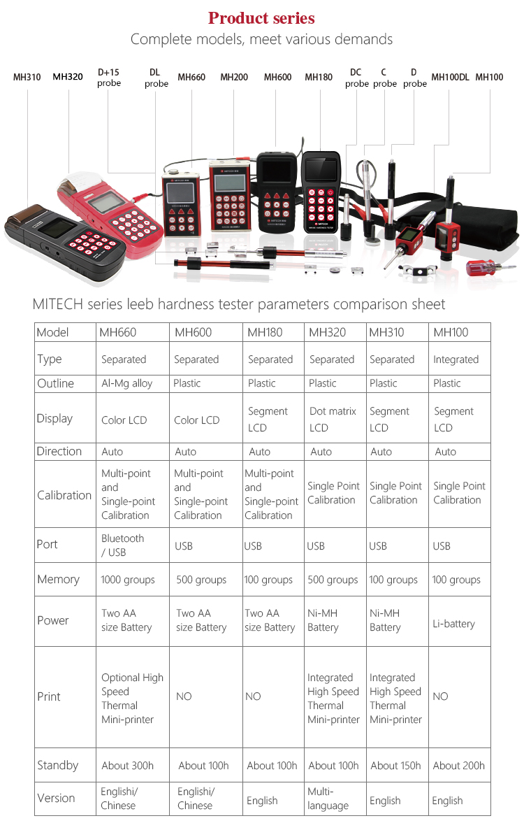 Product OverviewMH320 portable Leeb hardness tester is based on Leeb hardness measurement principle, it can be quickly and easily used for on-site testing hardness of metallic materials and support free conversion between Leeb, Brinell, Rockwell hardness and other scales. It uses 128 × 64 dot matrix LCD screen, rich information, intuitive, stable performance and integrated high-speed thermal printer, which enables printing with instant measurement results.It can be widely used in metal processing and manufacturing, special equipment, permanent component failure analysis, inspection and other fields. It is particularly suitable for large parts and non-removable part of the on-site hardness testing. It is to improve production efficiency and pass rate and is a wise choice to save the cost of production.