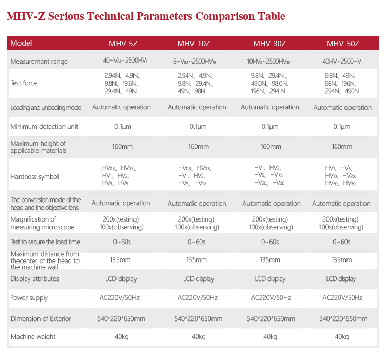 Product OverviewMitech MHV-Z series automatic turret vickers hardness tester, based on the principle that positive quadrangular pyramid diamond indenter presses the surface of the sample to produce indentation.By measuring the diagonal length of the indentation to achieve the measurement of the hardness of the material can be for small specimens, thin specimens, surface coating, heat treatment of the workpiece surface Vickers hardness test. With stable performance, strong structure, high reliability, simple operation, adopt high magnification optical measurement system, adjust the cold light source, photoelectric sensing technology and computer-aided means it has a powerful function. It is widely used in the fields of metal processing, electronics industry, mold parts, watch manufacturing, engineering quality inspection and so on. It is an ideal hardness tester for material research and testing
