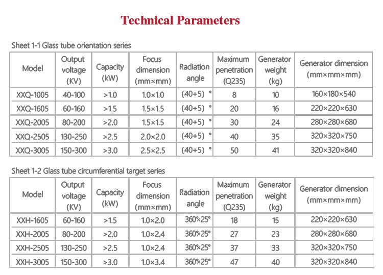 X ray generator produce X-ray film, using the different absorption degree between the material and thickness to display the internal defects of parts and weld seam in the film, according to the nature, size and location of the defect to evaluate the quality of materials and products.