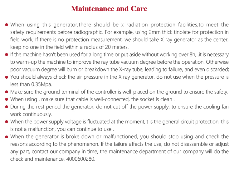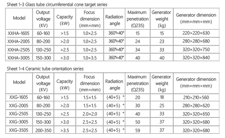X ray generator produce X-ray film, using the different absorption degree between the material and thickness to display the internal defects of parts and weld seam in the film, according to the nature, size and location of the defect to evaluate the quality of materials and products.