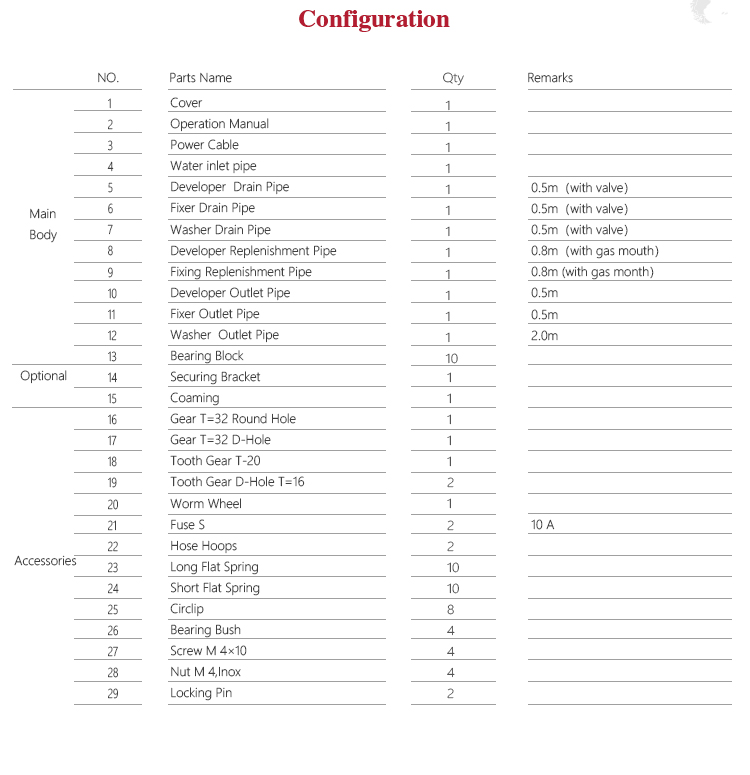 The four processes have high requirements for the temperature, time and liquid concentrations in developer and fixer. Film process has four modes, cold, preheating, wash and self-inspection. Under cold mode, system is on electricity but not work. Under preheating mode, working area starts to heat to certain temperature without film. When the film enters in, temperature goes up rapidly to wash film. Wash mode means film is under washing. Under self-inspection, it can check whether each component is working normally.