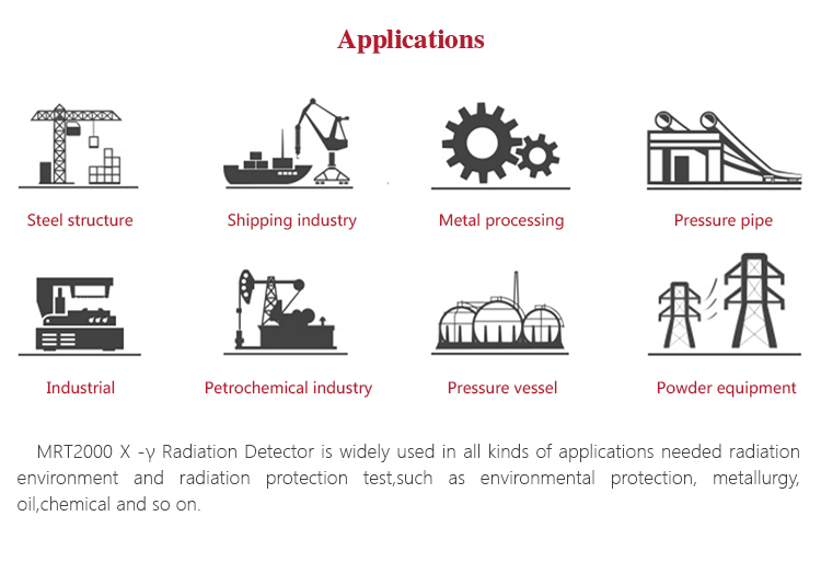 MRT2000 X -γRadiation Detector is widely used in all kinds of applications needed radiation environment and radiation protection test,such as environmental protection, metallurgy, oil,chemical and so on