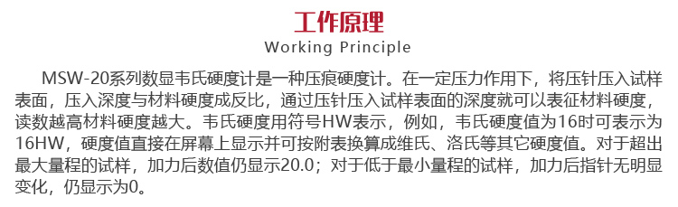 產(chǎn)品概述MSW-20系列數(shù)顯韋氏硬度計,分為MSW-20、MSW-20a、MSW-20b三種型號,它們體積小、重量輕、可單手操作,檢測過程中不必取樣,無高難技能的操作要求,適用于在生產(chǎn)現(xiàn)場對材料進(jìn)行快速無損的硬度檢測。與傳統(tǒng)鉗式硬度計相對比,數(shù)字顯示更方便讀數(shù)??蓾M足生產(chǎn)質(zhì)量控制及合格判定的檢測需求,對成批產(chǎn)品進(jìn)行逐件檢測。被廣泛的應(yīng)用于鋁型材行業(yè)及諸多門窗幕墻企業(yè)、工程質(zhì)檢及技術(shù)監(jiān)督部門,是提高生產(chǎn)合格率、節(jié)約成本必備的專業(yè)儀器。