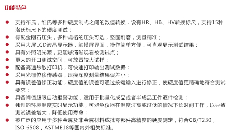 被廣泛的應(yīng)用于多種金屬及非金屬材料成批零部件高精度的硬度測定,符合GB/T230,ISO 6508,ASTME18等國內(nèi)外相關(guān)標(biāo)準(zhǔn)。