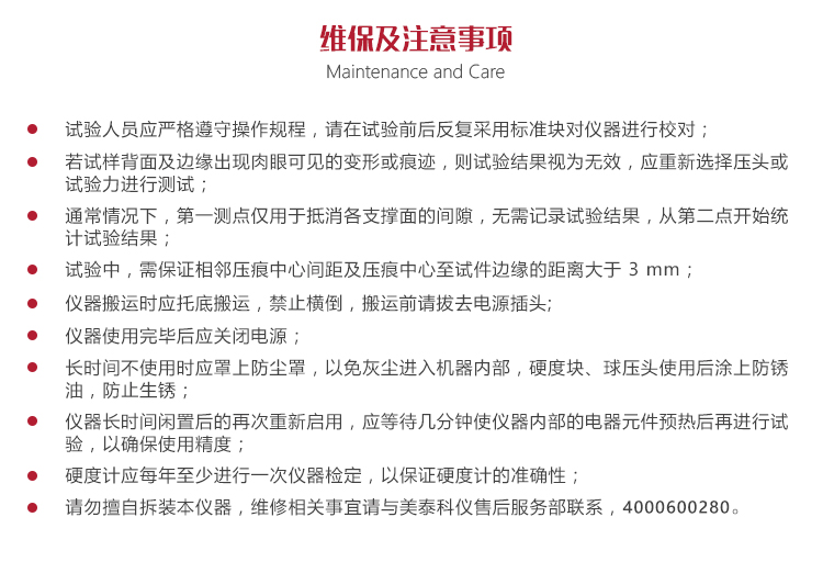 儀器的保養(yǎng)與維護試驗人員應(yīng)嚴格遵守操作規(guī)程,請在試驗前后反復(fù)采用標(biāo)準(zhǔn)塊對儀器進行校對;