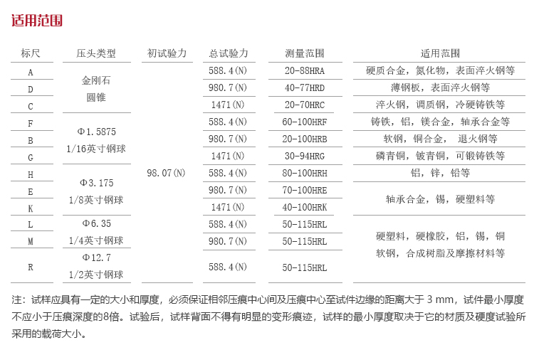 ?多種規(guī)格的壓頭可選,支持多種洛氏標(biāo)尺下的硬度測試;