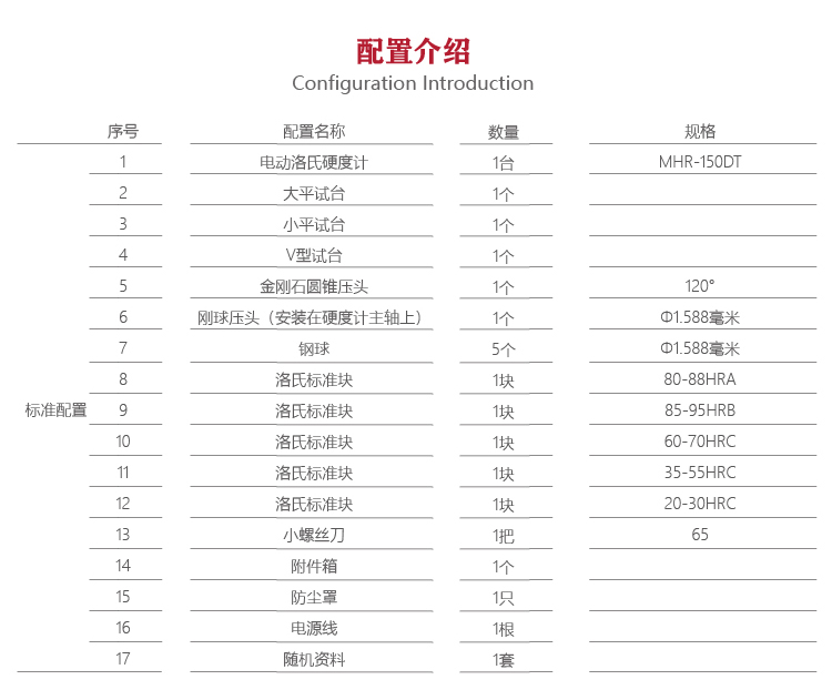 | 壓頭規(guī)格 | 金剛石圓錐壓頭120°,Φ1.588mm鋼球壓頭 |