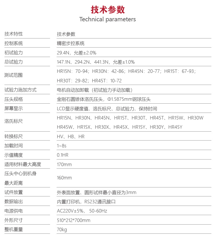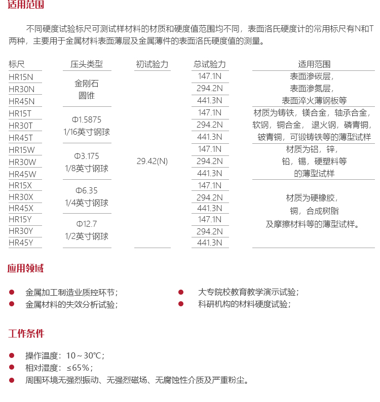 | 測(cè)試范圍 | HR15N:70-94;HR30N:42-86;HR45N:20-77;HR15T:67-93;HR30T:29-82;HR45T:10-72 |