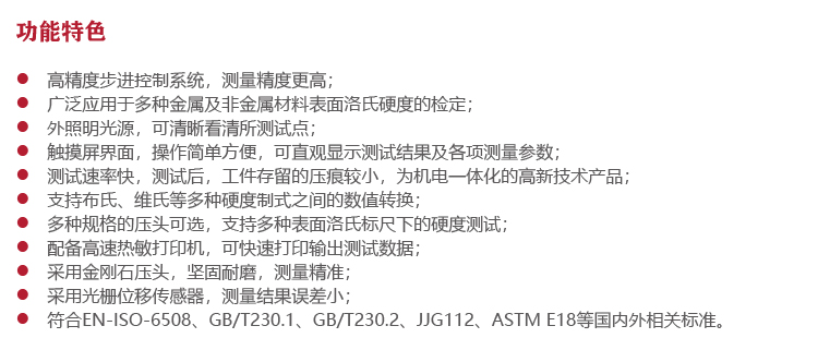 ?符合EN-ISO-6508、GB/T230.1、GB/T230.2、JJG112、ASTM E18等國(guó)內(nèi)外相關(guān)標(biāo)準(zhǔn)。