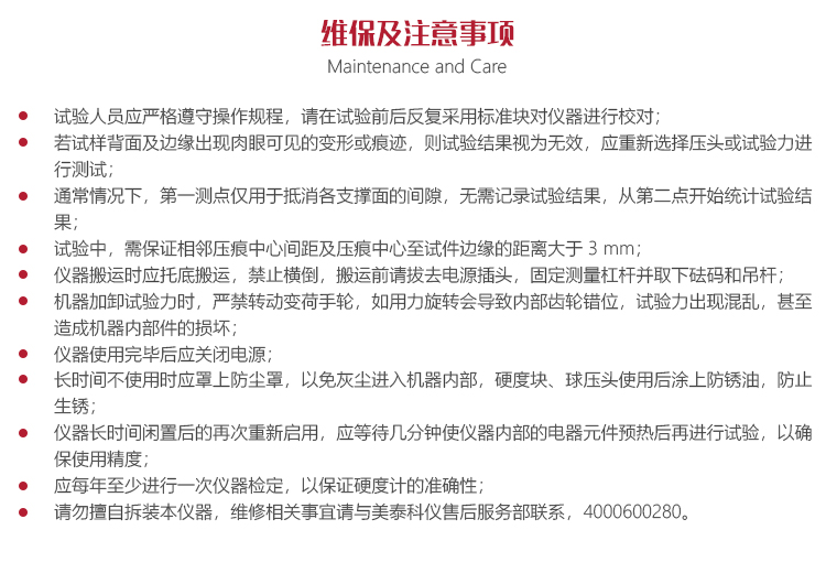 儀器的保養(yǎng)與維護?試驗人員應(yīng)嚴(yán)格遵守操作規(guī)程,請在試驗前后反復(fù)采用標(biāo)準(zhǔn)塊對儀器進行校對;
