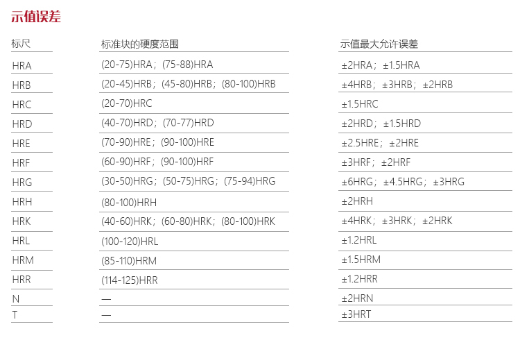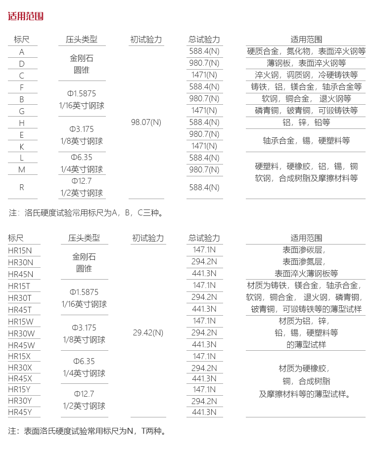 | 洛氏標尺 | HRA、HRB、HRC、HRD、HRE、HRF、HRG、HRH、HRK、HRL、HRM、HRP、HRR、HRS、HRV |