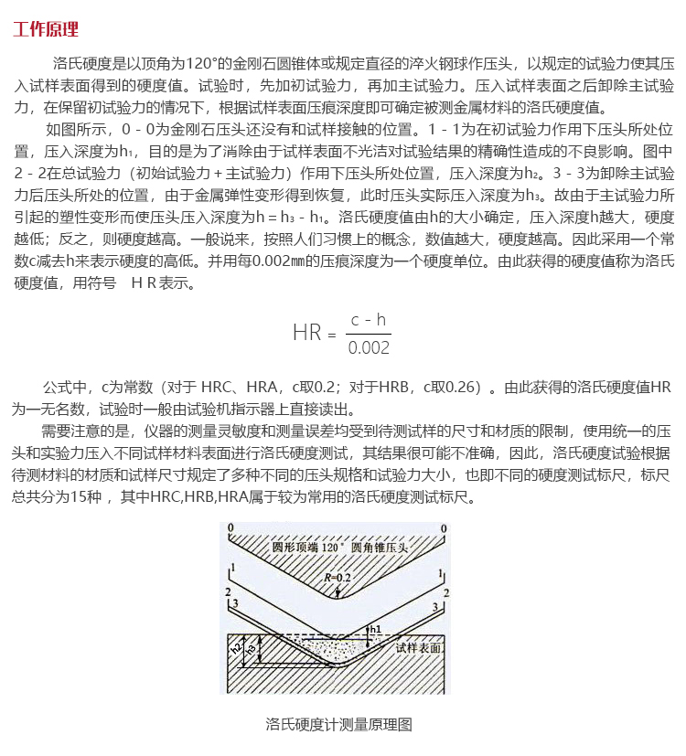 式中,c為常數(shù)(對于 HRC、HRA,c取0.2;對于HRB,c取0.26)。由此獲得的洛氏硬度值HR為一無名數(shù),試驗時一般由試驗機指示器上直接讀出。