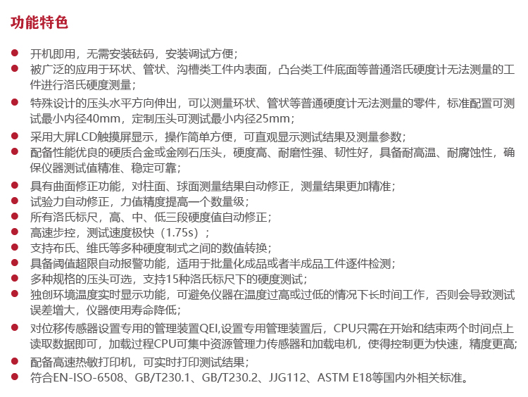 ?符合EN-ISO-6508、GB/T230.1、GB/T230.2、JJG112、ASTM E18等國內(nèi)外相關(guān)標準。