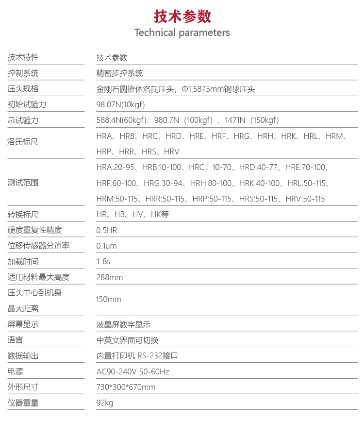 | 壓頭規(guī)格 | 金剛石圓錐體洛氏壓頭,Φ1.5875mm鋼球壓頭 |