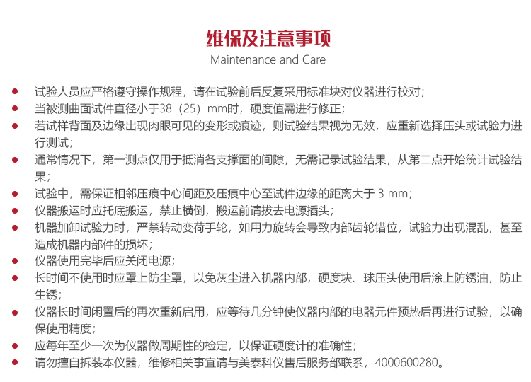 儀器的保養(yǎng)與維護? 試驗人員應(yīng)嚴格遵守操作規(guī)程,請在試驗前后反復(fù)采用標準塊對儀器進行校對;
