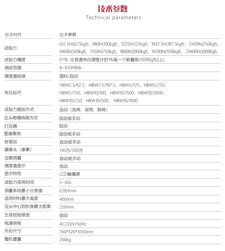 | 試驗力精度 | 0.1%. 比普通布氏硬度計的1%高一個數(shù)量級(1000Kgf以上) |