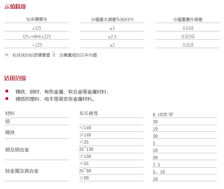 | 布氏標(biāo)尺 | HBW2.5/62.5、HBW2.5/187.5、HBW5/125、HBW5/250、HBW5/750、HBW10/100、HBW10/1500、HBW10/3000、HBW10/250、HBW10/ |