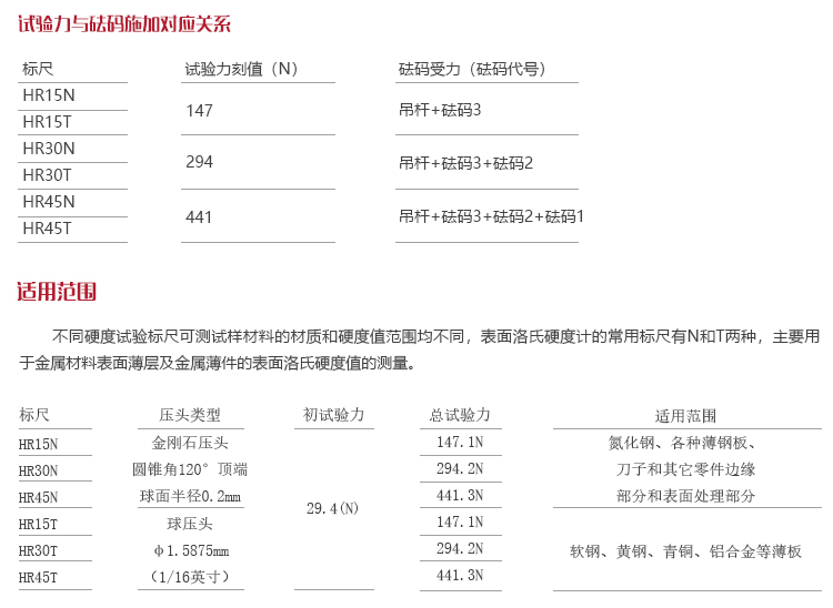 | 洛氏標(biāo)尺 | HR15N 、HR30N 、HR45N 、HR15T 、HR30T 、HR45T |