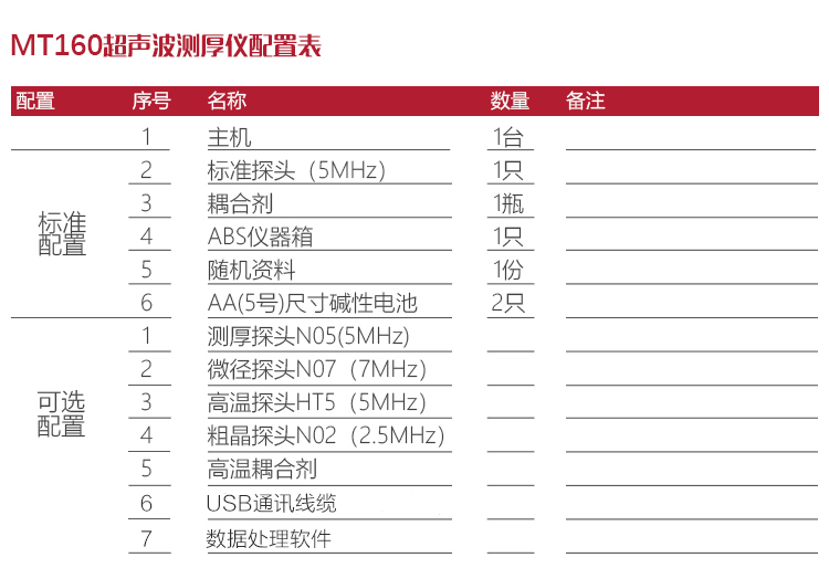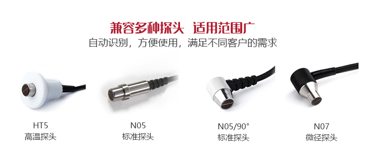 | 探頭直徑 | 測厚探頭N05直徑10MM、微晶探頭N07直徑6MM、高溫探頭HT5直徑12MM、粗晶探頭N02直徑12MM |