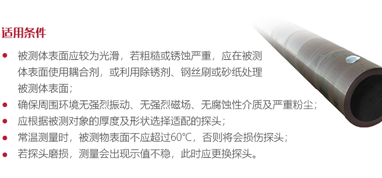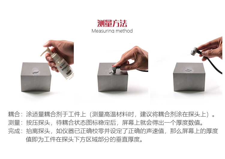 若被測體表面有大量耦合劑時,當(dāng)探頭離開被測體表面時,耦合劑會引起誤測。因此測量結(jié)束時,應(yīng)迅速將探頭移開被測體表面。