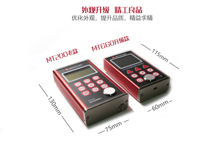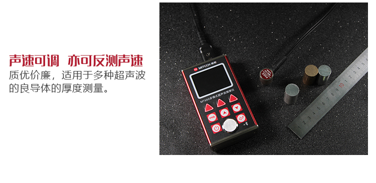 產(chǎn)品概述MT660超聲波測厚儀是美泰公司最新推出的升級產(chǎn)品,它更加注重用戶體驗(yàn)及功能創(chuàng)新,采用320×240彩色液晶顯示屏,光線昏暗及日光強(qiáng)烈環(huán)境下也能為您呈現(xiàn)清晰測量結(jié)果,大大提升了視覺體驗(yàn),密封的鋁美合金外殼精巧設(shè)計(jì),體積更小、品質(zhì)更優(yōu),專為防御惡劣現(xiàn)場環(huán)境中的油污、粉塵而設(shè)計(jì);智能化警示功能,超出設(shè)定范圍可自動提示,可方便讀數(shù),滿足高效采集材料多點(diǎn)厚度的精準(zhǔn)檢測需求,支持0.001高精度顯示、藍(lán)牙通訊,兼?zhèn)浯┩竿繉幽J脚c普通模式雙效功能,其獨(dú)特的可穿透涂層測厚度的性能為表面涂有油漆或防腐材料的工件厚度檢測提供了更加高效的解決方案,測量前無需處理掉表面的涂層,直接亦可測量。被廣泛應(yīng)用于石油、化工、冶金、造船、航空、航天等領(lǐng)域的生產(chǎn)設(shè)備中各種管道及壓力容器腐蝕減薄程度的監(jiān)測,也可用于對各種板材及各種加工零件做精確的測量。是提高生產(chǎn)效率與合格率、節(jié)約成本必備的專業(yè)精密儀器。