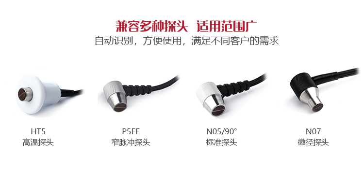 | 探頭直徑 | 測厚探頭NO5直徑10MM、微晶探頭N07直徑6MM、高溫探頭HT5直徑12MM、窄脈沖測厚探頭P5EE直徑10MM、粗晶探頭直徑12MM |