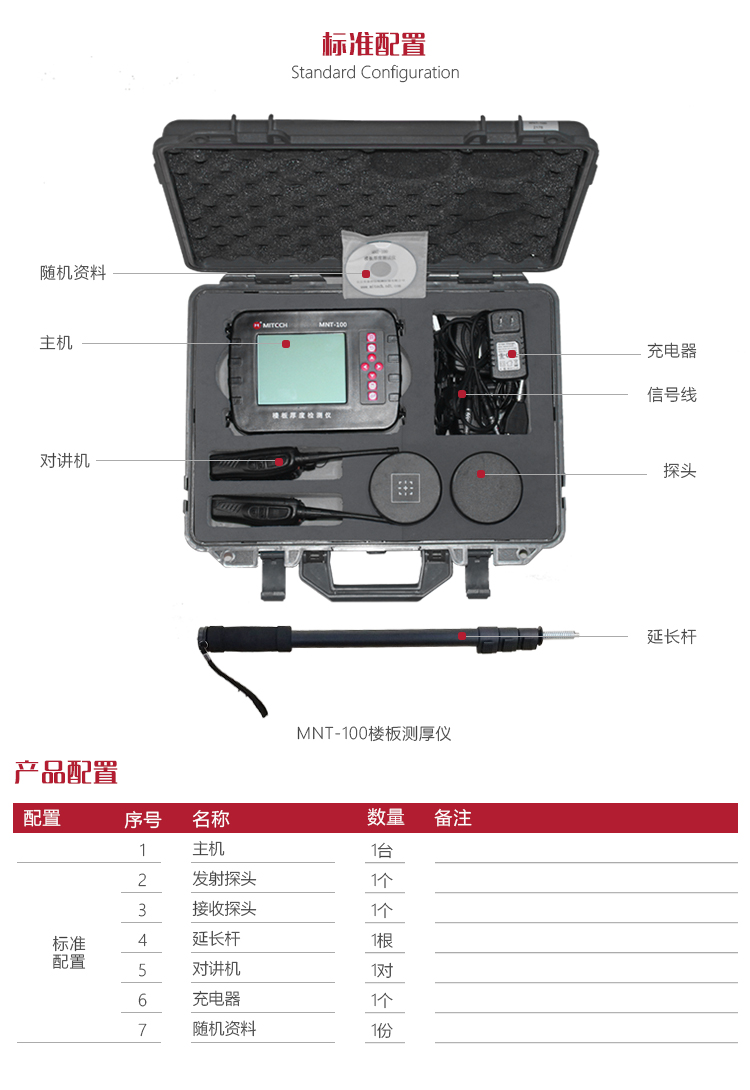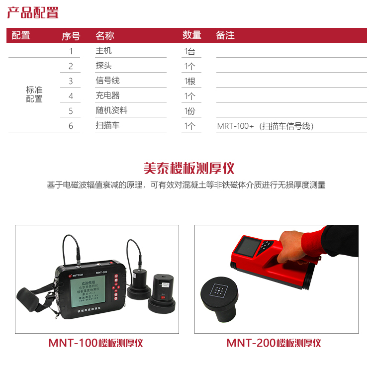 產(chǎn)品概述美泰MNT-200一體化樓板測(cè)厚儀,基于電磁波幅值衰減的原理,可有效對(duì)混凝土等非鐵磁體介質(zhì)進(jìn)行無(wú)損厚度測(cè)量。其體積小、重量輕,一體化設(shè)計(jì)集成度更高,故障率低。使用時(shí),通過(guò)主機(jī)屏幕上的箭頭指示來(lái)確定主機(jī)移動(dòng)方向,對(duì)準(zhǔn)發(fā)射探頭時(shí),儀器會(huì)智能判讀樓板厚度。其測(cè)值速度快、測(cè)量精度高、性能穩(wěn)定可靠,被廣泛應(yīng)用于建筑施工質(zhì)量監(jiān)控檢測(cè)等領(lǐng)域,是保障生命財(cái)產(chǎn)安全必備的專業(yè)精密檢測(cè)儀器。