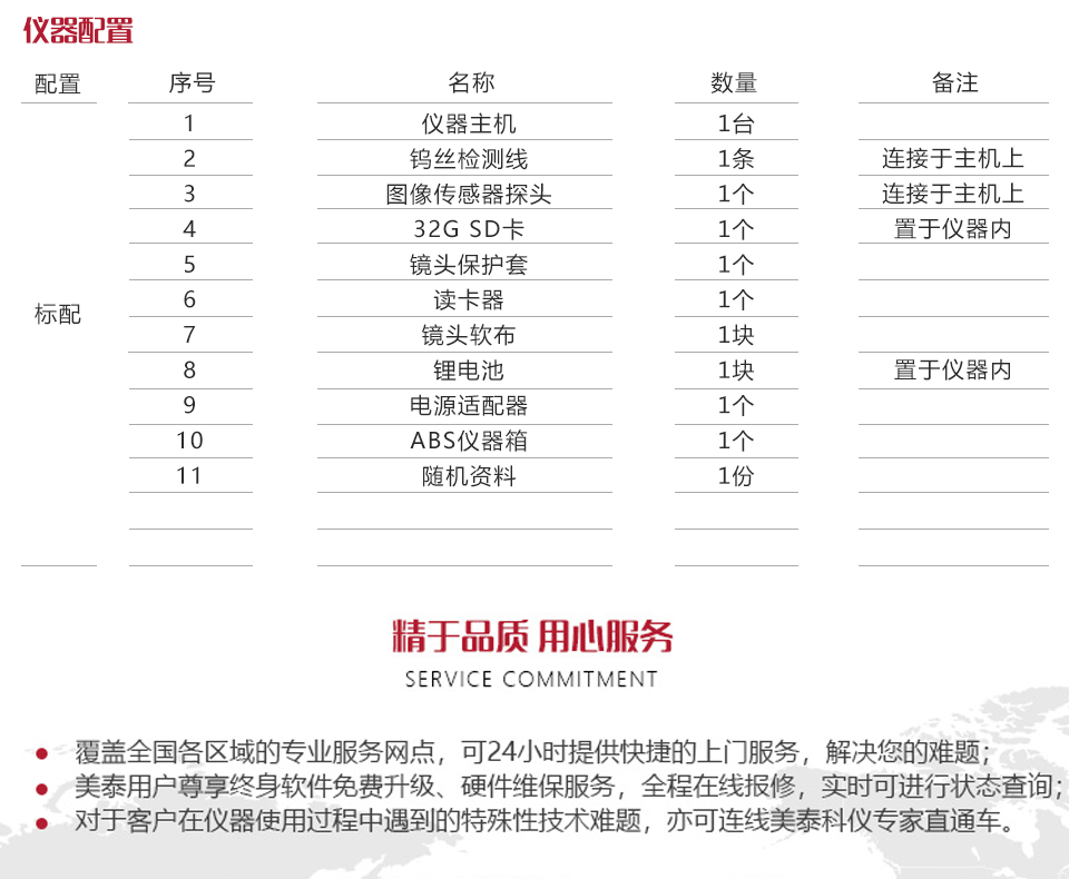 | 美泰電子內(nèi)窺鏡附有專用的隨機(jī)裝箱資料。包括產(chǎn)品合格證、保修卡、產(chǎn)品說(shuō)明書(shū)、裝箱清單。隨機(jī)資料采用專用的銅版紙印制,說(shuō)明書(shū)的圖文設(shè)計(jì)美觀、易懂、便于長(zhǎng)久保存。注:美泰品牌系列產(chǎn)品的隨機(jī)資料均可登陸pinopassport.com下載電子版。 | |