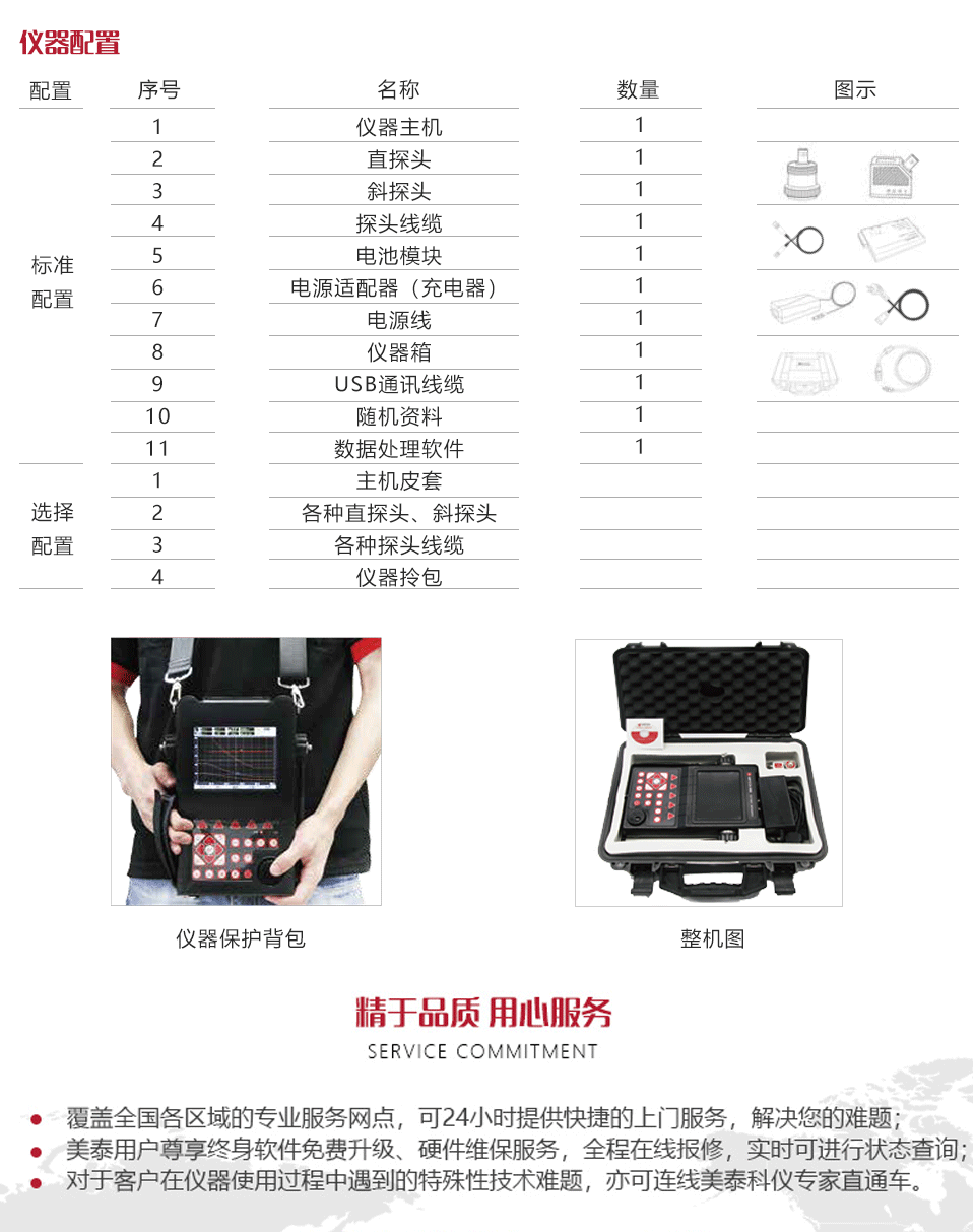 | 美泰超聲波探傷儀附有專用的隨機(jī)裝箱資料。包括產(chǎn)品合格證、保修卡、產(chǎn)品說明書、裝箱清單。隨機(jī)資料采用專用的銅版紙印制,說明書圖文設(shè)計(jì),美觀、易懂、便于長久保存。注:美泰品牌系列產(chǎn)品的隨機(jī)資料均可登陸pinopassport.com下載電子版。 | |