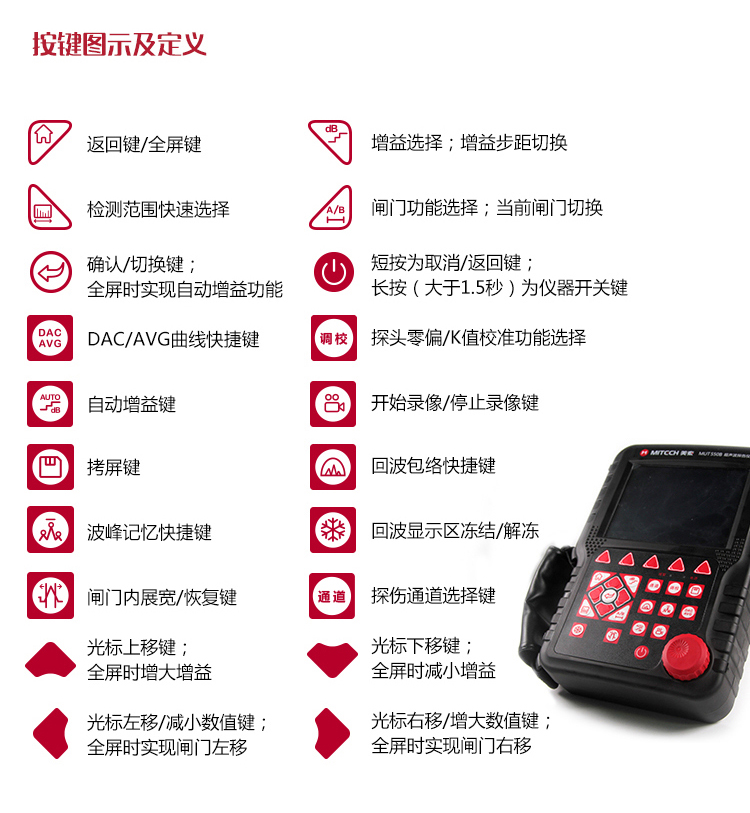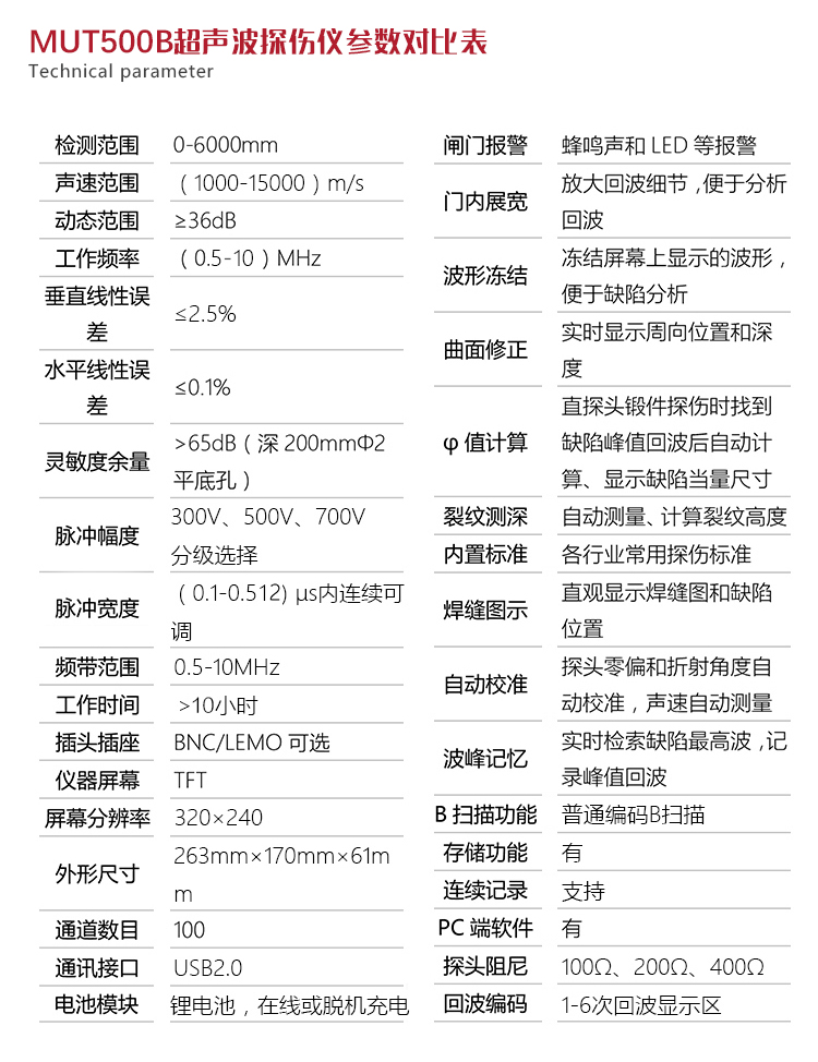 產(chǎn)品概述MUT500B是一款便攜式、全數(shù)字式超聲波探傷儀,能夠快速便捷、無(wú)損傷、精確地進(jìn)行工件內(nèi)部多種缺陷(裂紋、夾雜、氣孔等)的檢測(cè)、定位、評(píng)估和診斷。既可以用于實(shí)驗(yàn)室,也可以用于工程現(xiàn)場(chǎng)。 0-6000mm量程可滿足制造業(yè)、鋼鐵冶金業(yè)、金屬加工業(yè)、化工業(yè)等常規(guī)的缺陷需求,低功耗設(shè)計(jì)配備大容量高性能離子電池模塊可超長(zhǎng)待機(jī)數(shù)月以上;質(zhì)優(yōu)價(jià)廉,是實(shí)用經(jīng)濟(jì)款超聲檢測(cè)儀器的首選。