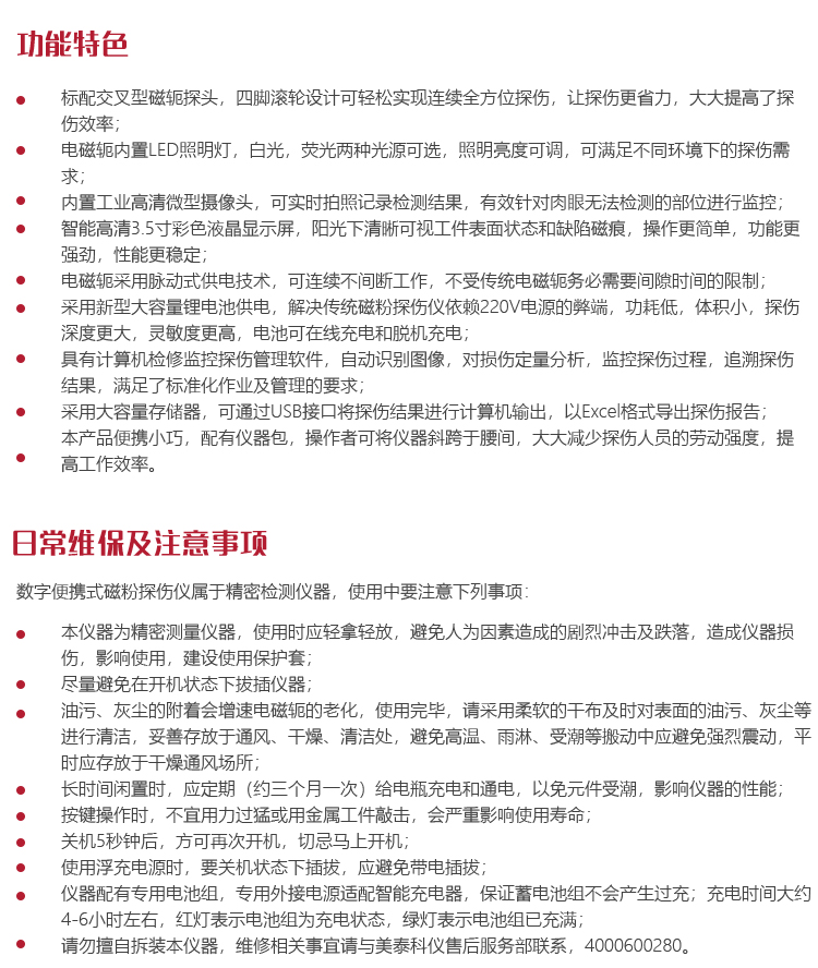 儀器的保養(yǎng)與維護(hù)數(shù)字便攜式磁粉探傷儀屬于精密檢測儀器,使用中要注意下列事項(xiàng):