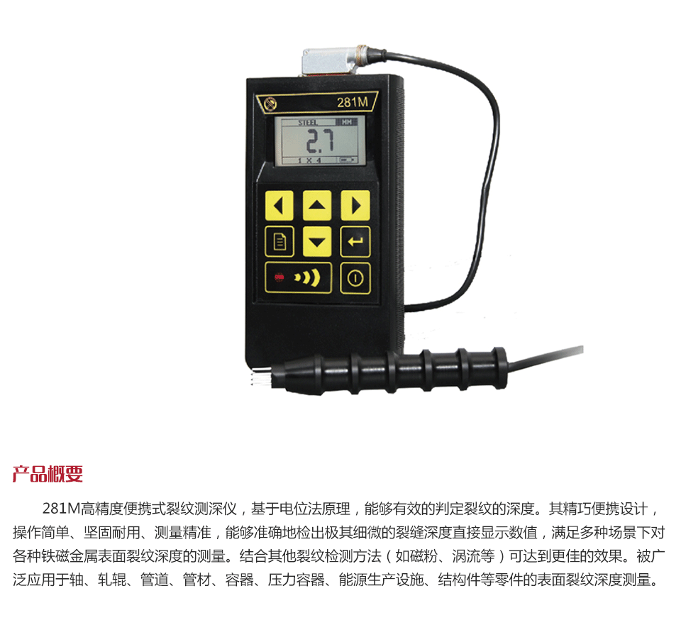 281M高精度便攜式裂紋測深儀,基于電位法原理,能夠有效的判定裂紋的深度。其精巧便攜設計,操作簡單、堅固耐用、測量精