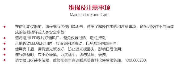 請(qǐng)勿遮擋LED觀片燈通風(fēng)口,避免儀器過(guò)熱,造成損毀;