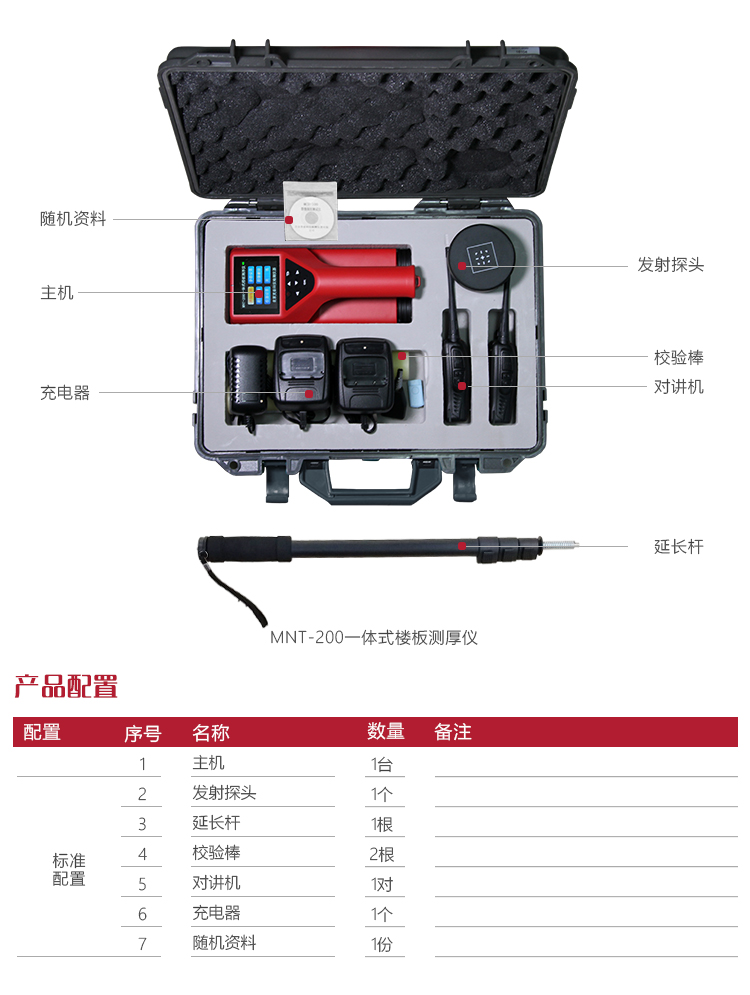 產(chǎn)品概述美泰MNT-100樓板測厚儀,基于電磁波幅值衰減的原理,可有效對混凝土等非鐵磁體介質進行無損厚度測量。其體積小、重量輕,易于攜帶,使用時,將發(fā)射探頭和接收探頭分別置于被測物體的兩相對測試面,依據(jù)接收信號,即刻測出厚度值。其測值速度快、測量精度高、性能穩(wěn)定可靠,被廣泛應用于建筑施工質量監(jiān)控檢測等領域,是保障生命財產(chǎn)安全必備的專業(yè)精密檢測儀器。