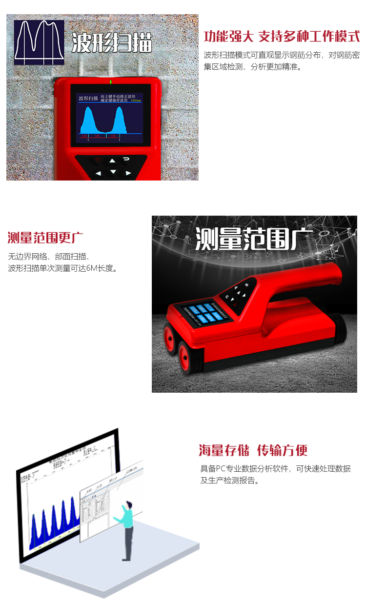 l 一體式精巧設(shè)計,集成度高,便于攜帶,新升級無線云傳輸,激光精準定位鋼筋位置;