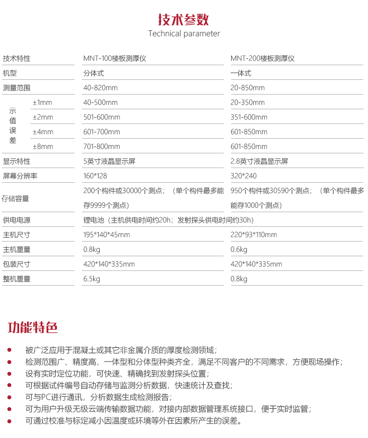 產(chǎn)品概述美泰MRT-200一體式鋼筋保護層測定儀,基于電磁感應(yīng)原理,采用一體化便攜式設(shè)計,可快速無損檢測鋼筋位置、布筋情況,根據(jù)已知直徑檢測混凝土保護層厚度及鋼筋直徑。其測量速度快、測量精度高、性能穩(wěn)定可靠,適用于對現(xiàn)有鋼筋混凝土工程及新建鋼筋混凝土結(jié)構(gòu)施工質(zhì)量的檢測,也可對非磁性和非導電介質(zhì)中的磁性體及導電體的位置進行檢測,如墻體內(nèi)的電纜、水暖管道等。是一款專業(yè)多功能智能型精密無損檢測儀器。
