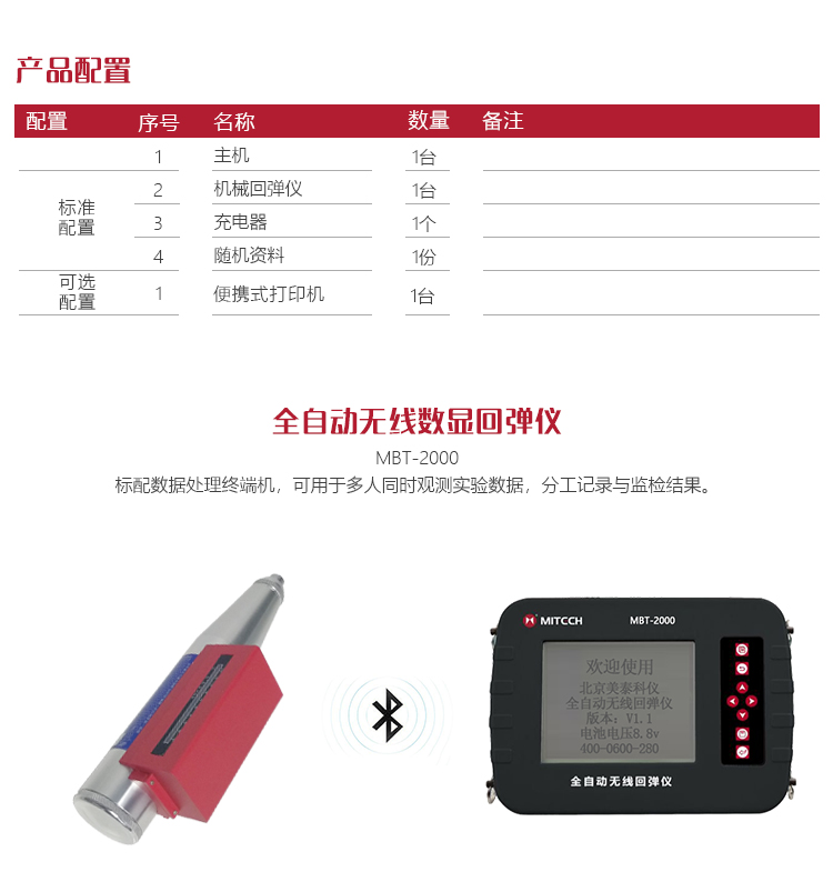 美泰MBT-2000全自動無線數(shù)顯回彈儀,依據(jù)彈擊裝置的沖擊回彈原理,可快捷無損的檢測混凝土的抗壓強度值,可即刻顯示被測工件的強度推定結果。其采用MOS圖像傳感器,配備高速USB接口,內置多種行業(yè)標準,可根據(jù)需求選擇相應的曲線,可記錄回彈值、碳化深度值、角度、測試面等參數(shù),標配數(shù)據(jù)處理終端機,可用于多人同時觀測試驗數(shù)據(jù),分工記錄與監(jiān)檢結果。被廣泛應用于建筑施工質量監(jiān)控檢測、高等院校科研教學實驗、質檢部門質量檢測環(huán)節(jié),是一款實用型工程質量無損檢測儀器。