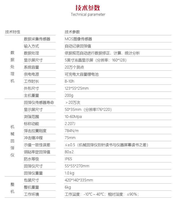 l 符合《回彈儀》(GB9138-2015)、《回彈儀法檢測混凝土抗壓強度技術規(guī)程》(JGJ/T23-2011)等相關標準。