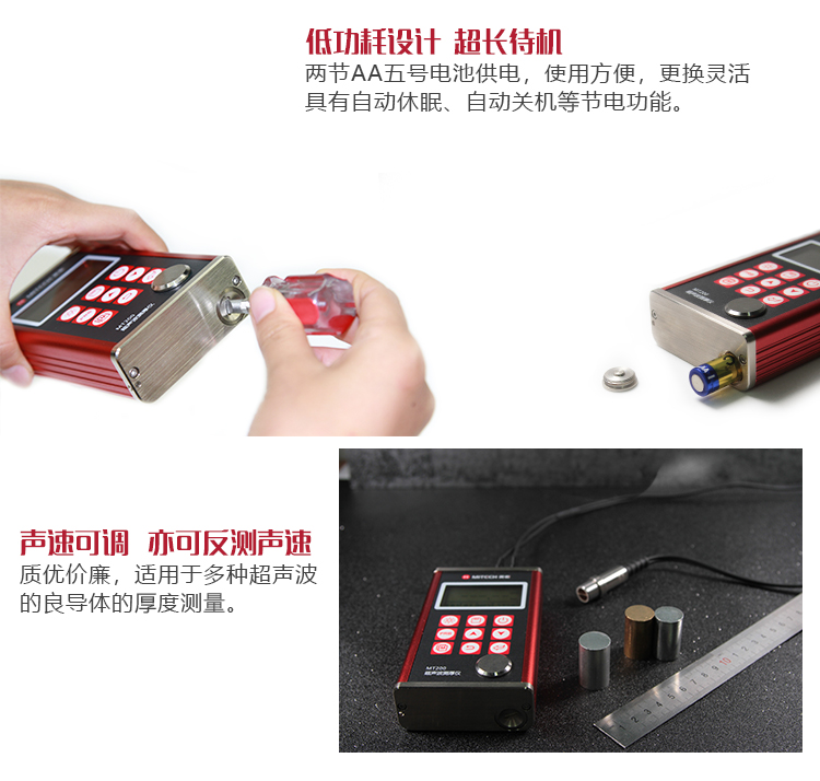 大容量存儲,低功耗設計,可超長待機數(shù)月以上已知厚度可以反測聲速,滿足多種材料的厚度檢測需求