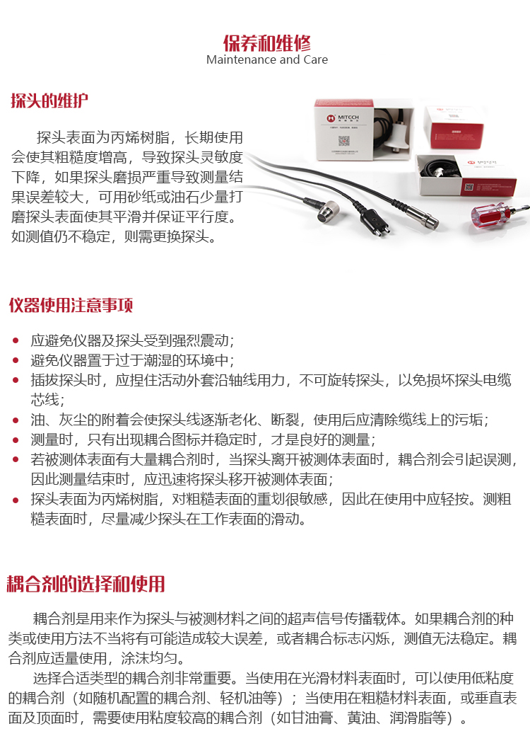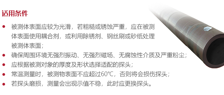 若被測體表面有大量耦合劑時,當探頭離開被測體表面時,耦合劑會引起誤測。因此測量結束時,應迅速將探頭移開被測體表面。
