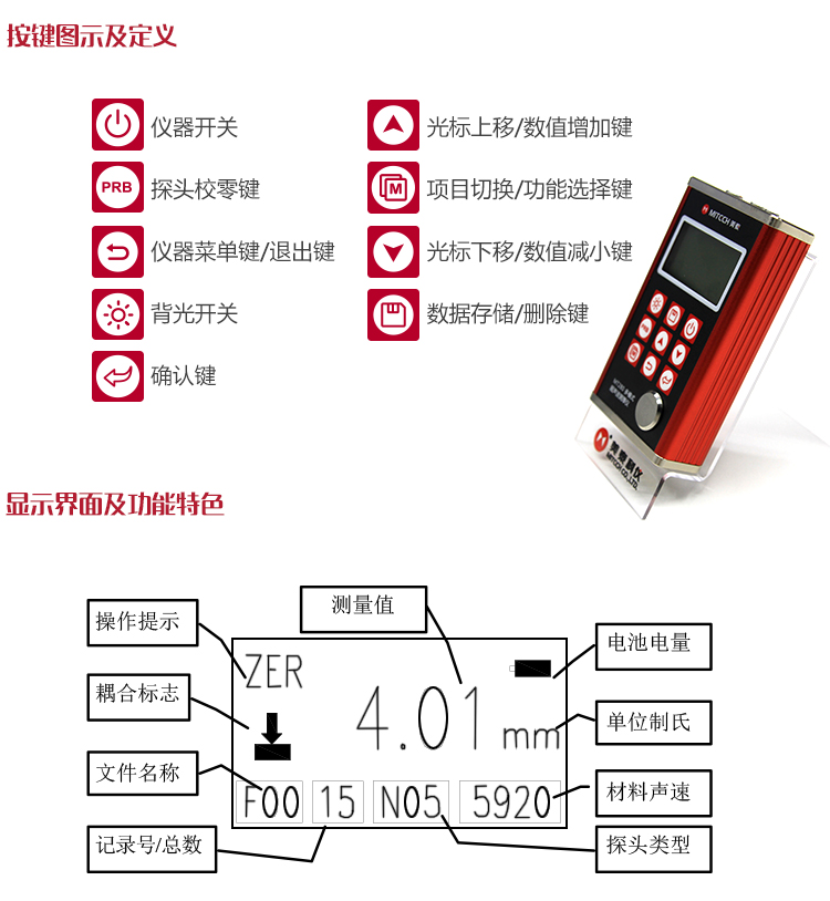 功能用途適合測量金屬(如鋼、鑄鐵、鋁、銅等)、塑料、陶瓷、玻璃、玻璃纖維及其他任何超聲波的良導體的厚度
