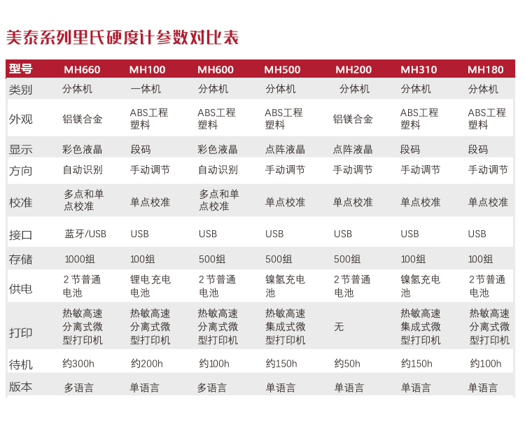 | 單位制式 | 里氏(HL)、布氏(HB)、洛氏B(HRB)、洛氏C(HRC)、洛氏A(HRA)、維氏(HV)、肖氏(HS) |